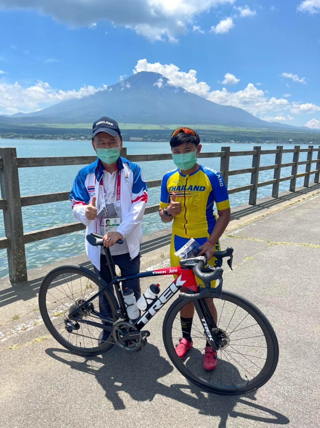 นายกสองล้อไทย กล่าวอีกว่า ในนามของสมาคมกีฬาจักรยานแห่งประเทศไทยฯ ขอขอบคุณ “บิ๊กต้อม” นายธนา ไชยประสิทธิ์ หัวหน้าคณะนักกีฬาไทย, รศ.ดร.สุพิตร สมาหิโต รองประธานคณะกรรมการโอลิมปิคแห่งประเทศไทยฯ และ น.อ.นพ.ไพศาล จันทรพิทักษ์ แพทย์ประจำทีมชาติไทย ที่ได้เดินทางไปเยี่ยมและให้กำลังใจ จุฑาธิป และ โค้ชวิสุทธิ์ ที่เมืองยามานากะโกะ จังหวัดยามานาชิ เมื่อช่วงเที่ยงของวันที่ 21 กรกฎาคม ตามเวลาท้องถิ่น เป็นการสร้างขวัญและกำลังให้แก่นักกีฬาได้เป็นอย่างดี สำหรับการฝึกซ้อมในวันที่ 22 กรกฎาคม โค้ชวิสุทธิ์ จะให้ จุฑาธิป ซ้อมใหญ่ในเส้นทางแข่งขันจริงเกือบ 100 % ระยะทางประมาณ 120-130 กม.