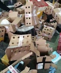 จากการรายงานพบว่ามีรถบรรทุกของบริษัทขนส่งสินค้าเดินทางมาส่งสินค้าที่ศูนย์โลจิสติกส์ตงซิง ในเมืองลั่วเหอ มณฑลเหอหนาน เพื่อทำการกระจายสินค้าไปยังผู้สั่งซื้อ แต่เจ้าหน้าที่บริษัทโลจิสติกส์ได้เข้าตรวจสอบสินค้าดังกล่าวแล้วพบว่ากล่องพัสดุเหล่านี้บรรจุสัตว์เลี้ยงมา พวกเขาจึงไม่ได้เซ็นรับพัสดุ เพราะผิดกฎหมายที่จีนได้กำหนดไว้