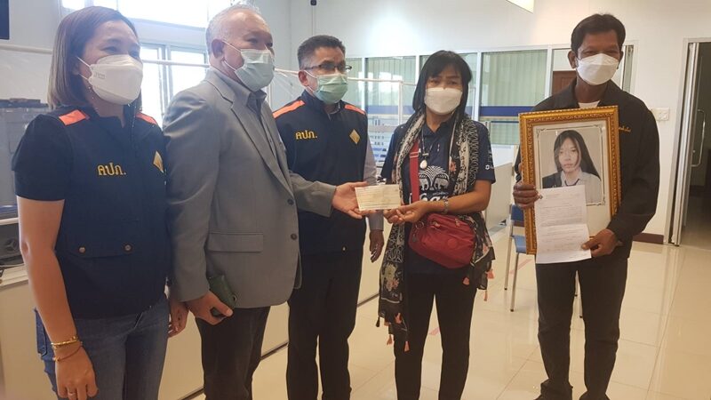 เมื่อเวลา 14.00 น. วันที่ 10 ธ.ค.2564 นายภูสิตต์ ยิ้มพานิช ผอ.ฝ่ายบริหารสาขา 2 ซึ่งได้รับมอบหมายจากฝ่ายบริหารบริษัท อาคเนย์ประกันภัย จำกัด (มหาชน) เดินทางมายังสำนักงานคณะกรรมการกำกับและส่งเสริมการประกอบธุรกิจประกันภัย (คปภ.) จ.บุรีรัมย์ เพื่อนำเช็คค่าสินไหมทดแทน จำนวน 2,500,000 บาท มามอบให้กับ นายสมชาย และ นางสมเร็จ เกรัมย์ พ่อและแม่ของ น.ส.พัชราภา เกรัมย์ หรือ น้องหญิง นักศึกษาปี 4 มหาวิทยาลัยราชภัฏบุรีรัมย์ เหยื่อที่ถูกรถเบนซ์ชนเสียชีวิต