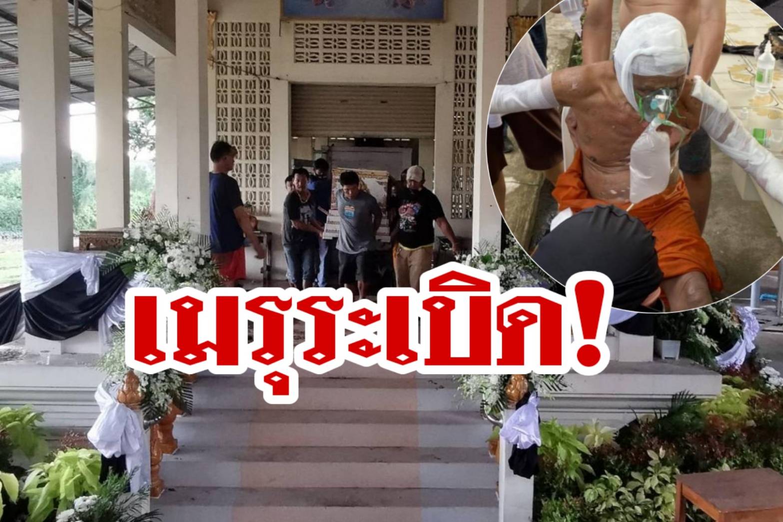 สอบถามชาวบ้านที่มาร่วมงานทราบว่า ก่อนเกิดเหตุสัปเหร่อทั้ง 2 คนเตรียมเตาไว้เพื่อเผาศพ แต่จังหวะที่ทำพิธีเสร็จถึงขั้นตอนเผา เตาเกิดขัดข้องไม่ทำงาน สัปเหร่อจึงเข้าไปตรวจสอบด้านหลังเตาเผา ไม่นานก็เกิดระเบิดดังขึ้นสนั่นหวั่นไหว ทำให้ร่างของสัปเหร่อสองพี่น้องกระเด็นถูกไฟลวกได้รับบาดเจ็บ ส่วนชาวบ้านก็ต่างพากันตกใจวิ่งหนีคนละทิศละทาง หลังเกิดเหตุจึงรีบแจ้งเจ้าหน้าที่เข้าช่วยเหลือดังกล่าว