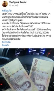 โดยระบุว่า “#เตือนระวัง แบงค์ 100 บาทฉบับใหม่ ใกล้เคียงแบงค์ 1,000 บาทมากๆๆ หลังกดเงินเมื่อเช้าคุยกับแฟนว่า เหมือนแบงก์ 1,000 มากๆ เลย พอแฟนไปซื้อของ 50 บาท แม่ค้าทอนมา 950 บาท เลยบอกแม่ค้าว่า อันนี้แบงก์ 100 บาท ระวังกันด้วยนะ ใกล้เคียงกับแบงค์ 1,000 บาทจริงๆ #การเงิน #แม่ค้า”