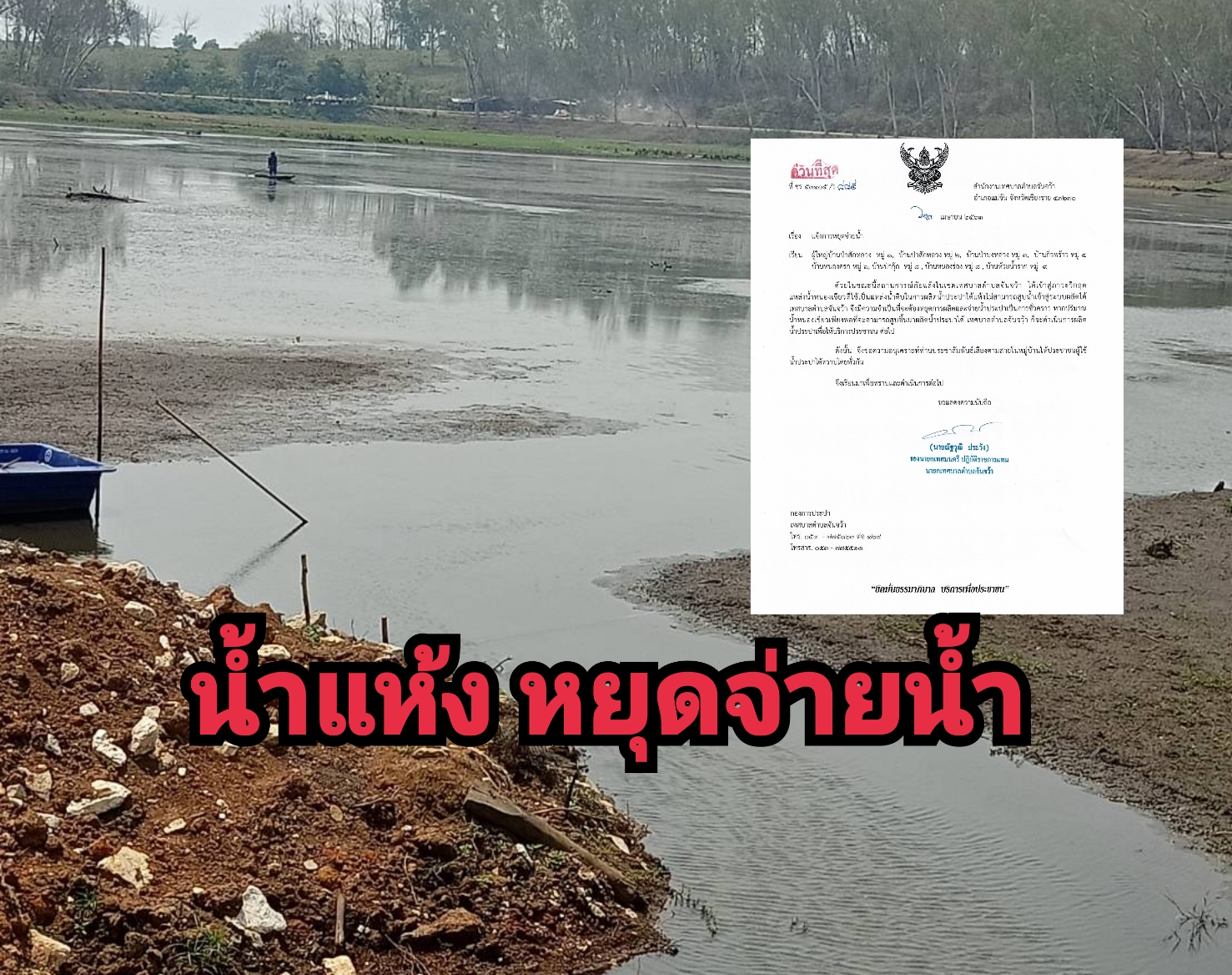 สำนักงานเทศบาลตำบลจันจว้า อำเภอแม่จัน จังหวัดเชียงราย ทำหนังสือแจ้งการหยุดจ่ายน้ำ ระบุแหล่งน้ำหนองเขียวที่ใช้เป็นแหล่งน้ำดิบในการผลิตน้ำประปาแห้งจนไม่สามารถสูบน้ำเข้าสู่ระบบผลิตได้