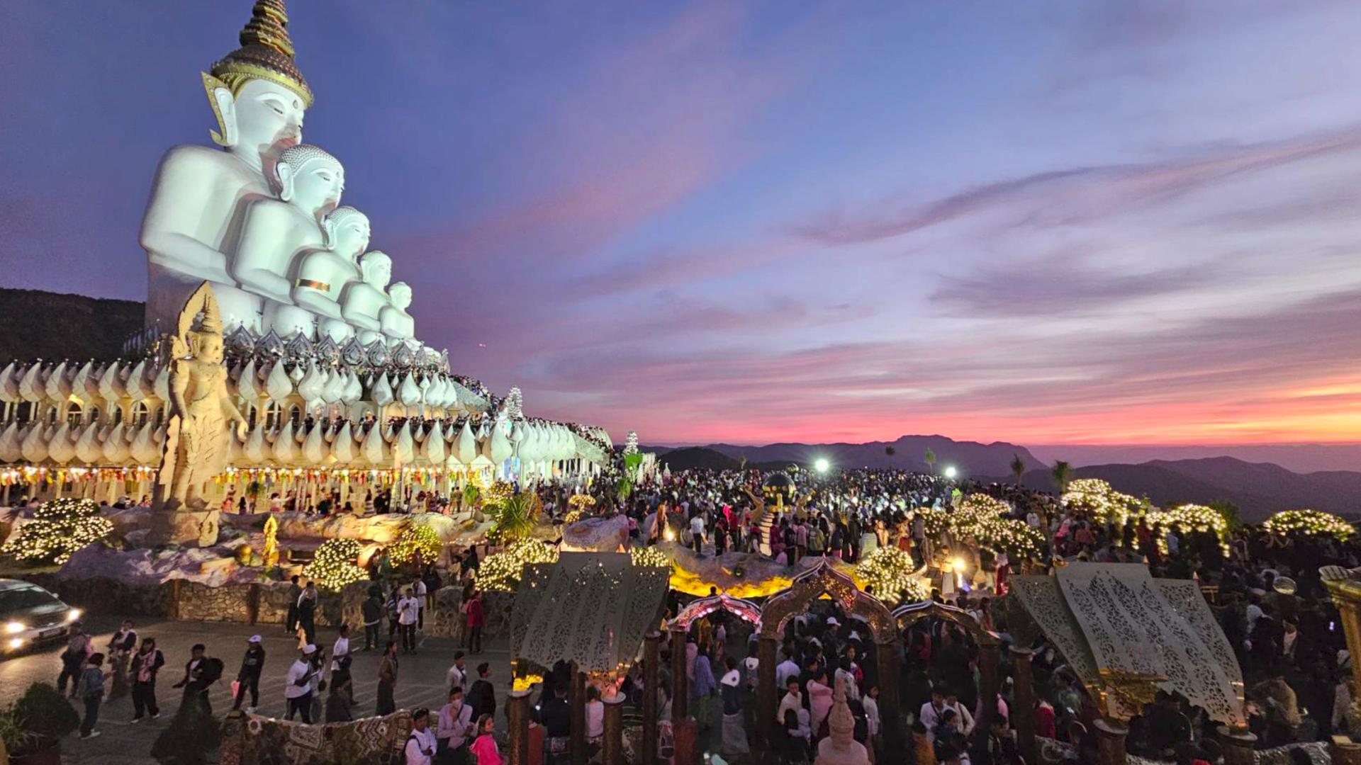 เขาค้อแทบแตก นักท่องเที่ยวแห่สักการะวัดพระธาตุผาซ่อนแก้ว คนแน่นเต็มพื้นที่ การจราจรติดขัดหนัก