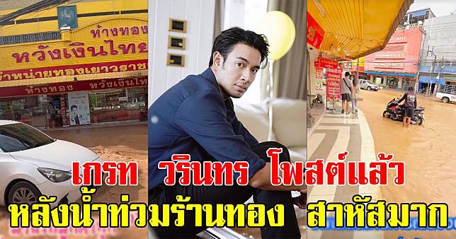 จากนั้นไม่นาน กู๊ด ชยพล น้องชาย เกรท วรินทร ได้อัดคลิปหน้าร้านทองอัปเดตสถานการณ์น้ำท่วม ผ่านอินสตาแกรมส่วนตัวอีกครั้งว่า “ตอนนี้สถานการณ์ค่อนข้างจะหนักหนาสาหัส มาช่วยเจ๊กุ้งลุ้นคืนนี้น้ำจะเข้าบ้านหรือเปล่า สำหรับลูกค้าร้านเจ๊กุ้งใครที่จะส่งดอกหรือทำอะไรไม่ต้องกังวลเลย เลื่อนออกไปก่อน 1 อาทิตย์ เดี๋ยวค่อยเจอกันนะครับ”