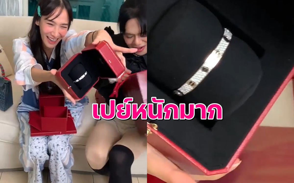 ปังสุดอะไรสุด เพราะอั้มเปิดกล่องออกมาถึงกับกรี๊ด แต่ก็ติดฮาว่าไม่น่าสลักชื่อเลยเพราะว่าเอาไปขายต่อไม่ได้ แต่ก็ชมว่าพี่เอ๋ป๋ามากที่ซื้อของชิ้นแพงๆ ให้อั้มแบบนี้ ซึ่งพี่เอ๋ก็บอกด้วยว่ากับผู้ชายพี่เอก็เปย์แบบนี้เหมือนกันจ้า และคำพูดสุดพีคตรงๆ ฮาๆ จากอั้มด้วยว่า xึงก็หักเงินกูตลอด” ที่อดขำไม่ได้จริงๆ