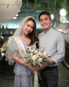 ตอนนี้ได้ฤกษ์แต่งแล้วเป็นวันที่ 28 พ.ค. 64 ติดต่อโรงแรมไว้แล้วเป็นโรงแรม สยามเคมปินสกี้ ส่วนธีมงานยังไม่ได้คิดค่อยไปคิดกันที่บ้าน จั๊กจั่นชมฝ่ายชายดูแลดี ต่างคนต่างเรียนรู้ซึ่งกันและกัน อยู่กันเหมือนเพื่อน อยู่ด้วยแล้วสบายใจ