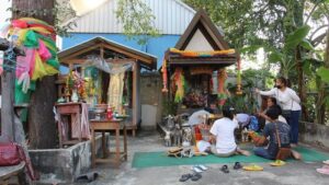 นายสุชาติ (ขอสงวนนามสกุล) อายุ 53 ปี เปิดเผยว่า ทุกวันจะมารดน้ำกล้วยที่ปลูกไว้ข้างศาล พอเห็นทีแรกก็ไม่ได้คิดอะไร นึกว่าเป็นน้ำจากแจกันรั่วซึมออกมา หยิบดูแจกันก็ไม่มีรอยรั่ว เมื่อจับดูก็พบว่ามีน้ำมันยางเหนียวมากไหลออกมาจากเสา เห็นแปลก ๆ จึงโทรศัพท์บอกพี่สาว และไปซื้อผ้าสีมาผูก พวงมาลัย และแผ่นทองคำมาปิดรับ